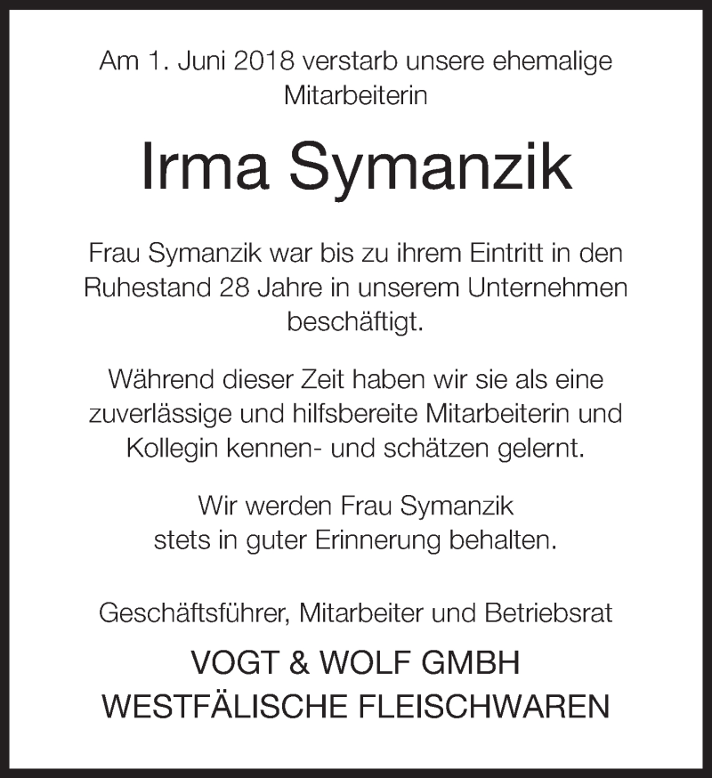 Hier finden Sie alle Traueranzeigen aus der Zeitung, die bisher für Irma Symanzik erschienen sind. Weitere Traueranzeigen, die in der Zeitung erscheinen, werden hier ebenfalls aufgelistet