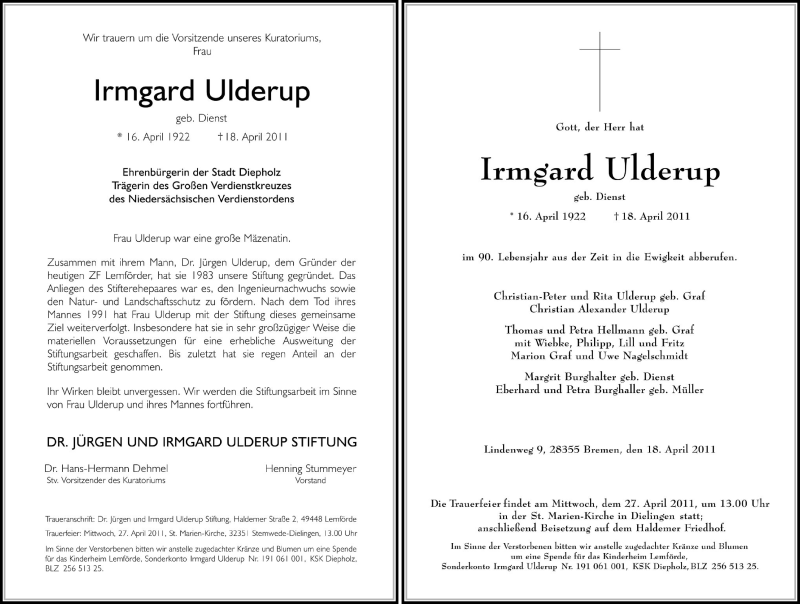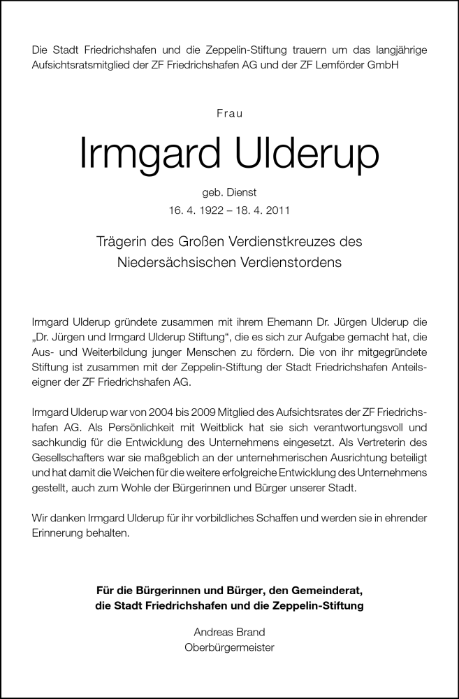 Hier finden Sie alle Traueranzeigen aus der Zeitung, die bisher für Irmgard Ulderup erschienen sind. Weitere Traueranzeigen, die in der Zeitung erscheinen, werden hier ebenfalls aufgelistet