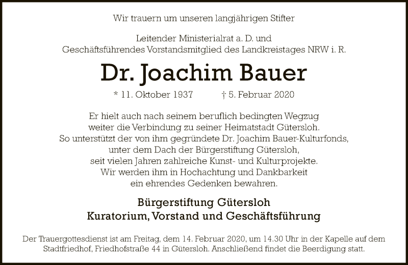 Hier finden Sie alle Traueranzeigen aus der Zeitung, die bisher für Joachim Bauer erschienen sind. Weitere Traueranzeigen, die in der Zeitung erscheinen, werden hier ebenfalls aufgelistet