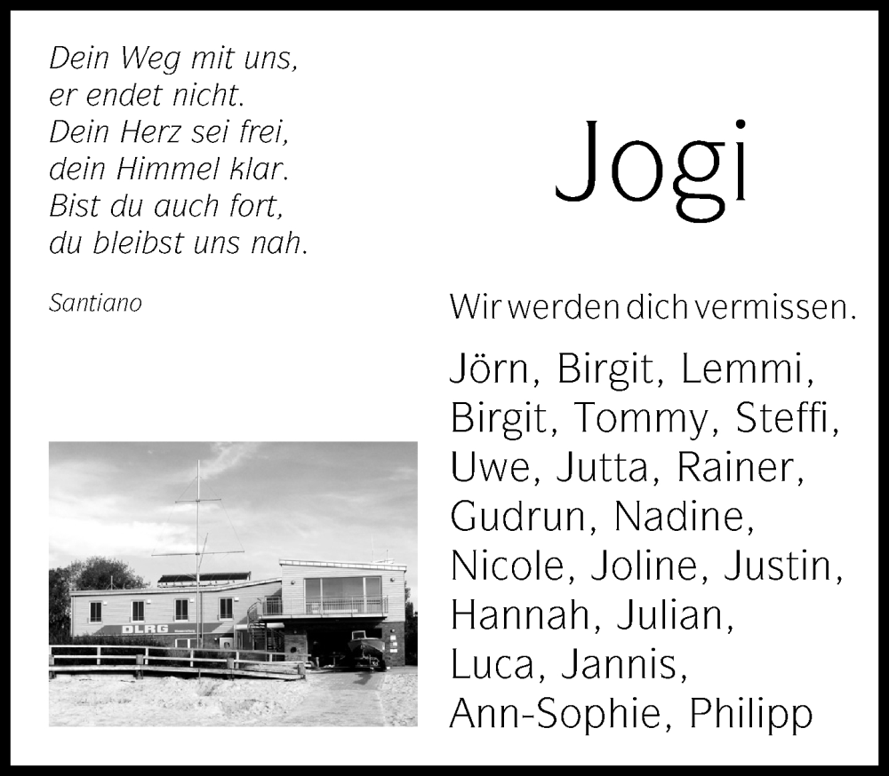 Hier finden Sie alle Traueranzeigen aus der Zeitung, die bisher für Jogi erschienen sind. Weitere Traueranzeigen, die in der Zeitung erscheinen, werden hier ebenfalls aufgelistet