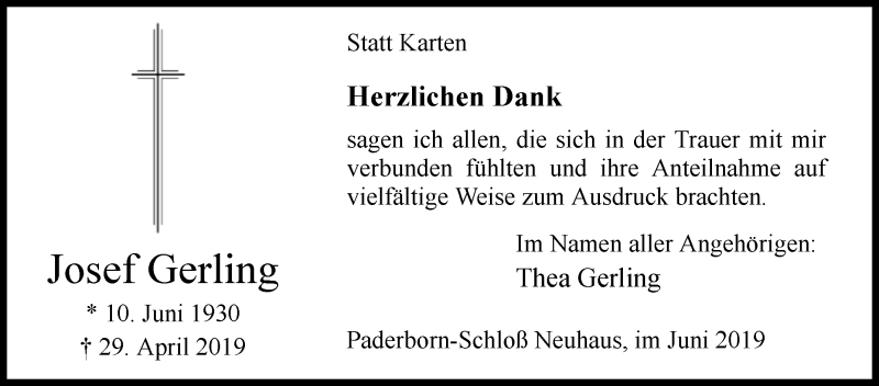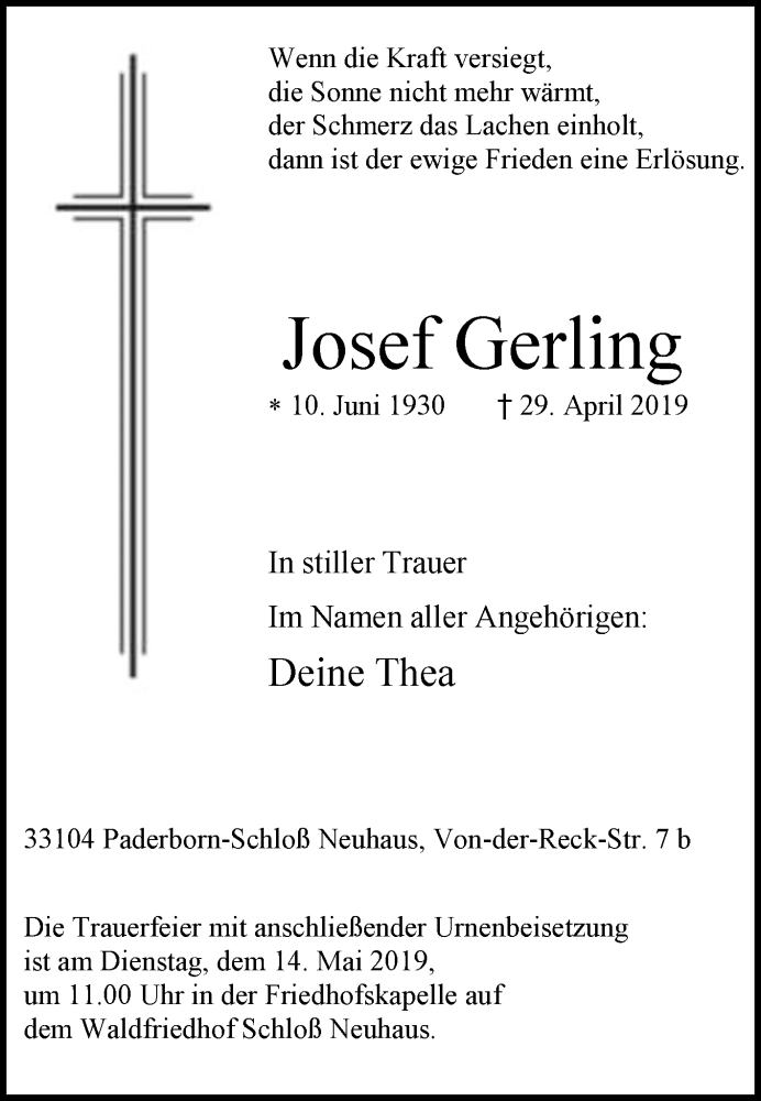 Hier finden Sie alle Traueranzeigen aus der Zeitung, die bisher für Josef Gerling erschienen sind. Weitere Traueranzeigen, die in der Zeitung erscheinen, werden hier ebenfalls aufgelistet