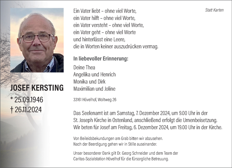Hier finden Sie alle Traueranzeigen aus der Zeitung, die bisher für Josef Kersting erschienen sind. Weitere Traueranzeigen, die in der Zeitung erscheinen, werden hier ebenfalls aufgelistet