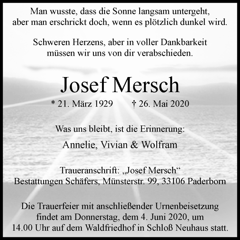 Hier finden Sie alle Traueranzeigen aus der Zeitung, die bisher für Josef Mersch erschienen sind. Weitere Traueranzeigen, die in der Zeitung erscheinen, werden hier ebenfalls aufgelistet