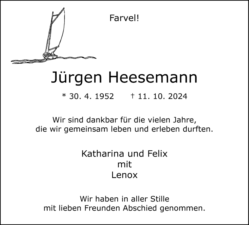 Hier finden Sie alle Traueranzeigen aus der Zeitung, die bisher für Jürgen Heesemann erschienen sind. Weitere Traueranzeigen, die in der Zeitung erscheinen, werden hier ebenfalls aufgelistet