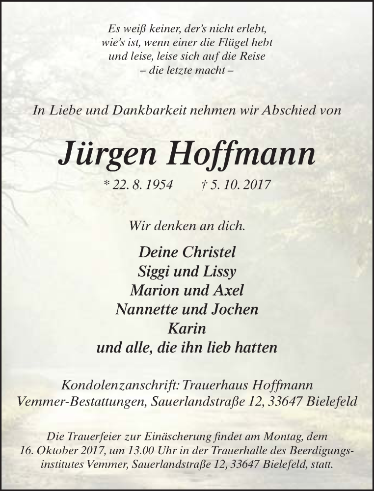 Hier finden Sie alle Traueranzeigen aus der Zeitung, die bisher für Jürgen Hoffmann erschienen sind. Weitere Traueranzeigen, die in der Zeitung erscheinen, werden hier ebenfalls aufgelistet