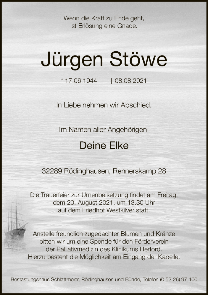 Hier finden Sie alle Traueranzeigen aus der Zeitung, die bisher für Jürgen Stöwe erschienen sind. Weitere Traueranzeigen, die in der Zeitung erscheinen, werden hier ebenfalls aufgelistet