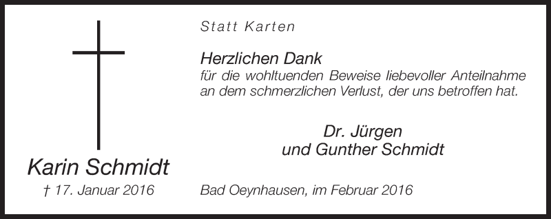 Hier finden Sie alle Traueranzeigen aus der Zeitung, die bisher für Karin Schmidt erschienen sind. Weitere Traueranzeigen, die in der Zeitung erscheinen, werden hier ebenfalls aufgelistet