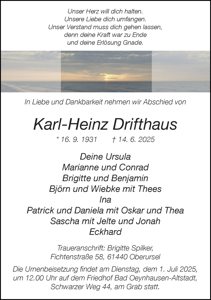 Hier finden Sie alle Traueranzeigen aus der Zeitung, die bisher für Karl-Heinz Drifthaus erschienen sind. Weitere Traueranzeigen, die in der Zeitung erscheinen, werden hier ebenfalls aufgelistet