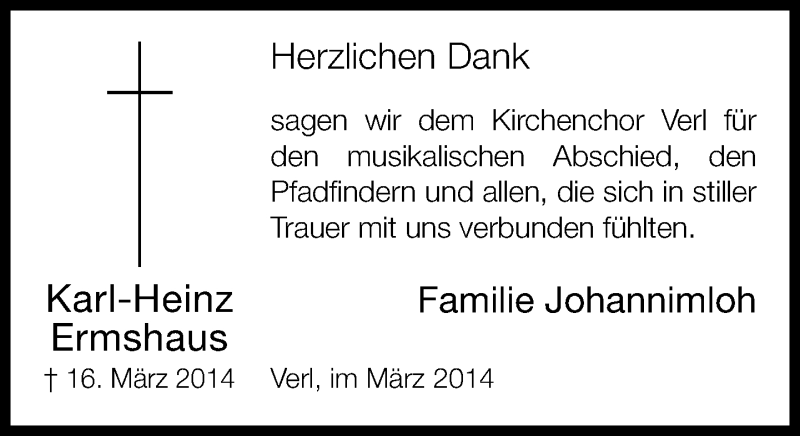 Hier finden Sie alle Traueranzeigen aus der Zeitung, die bisher für Karl-Heinz Ermshaus erschienen sind. Weitere Traueranzeigen, die in der Zeitung erscheinen, werden hier ebenfalls aufgelistet