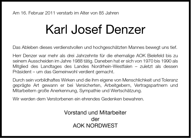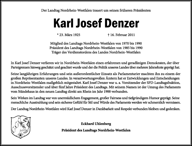 Hier finden Sie alle Traueranzeigen aus der Zeitung, die bisher für Karl Josef Denzer erschienen sind. Weitere Traueranzeigen, die in der Zeitung erscheinen, werden hier ebenfalls aufgelistet