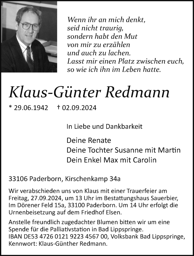 Hier finden Sie alle Traueranzeigen aus der Zeitung, die bisher für Klaus-Günter Redmann erschienen sind. Weitere Traueranzeigen, die in der Zeitung erscheinen, werden hier ebenfalls aufgelistet