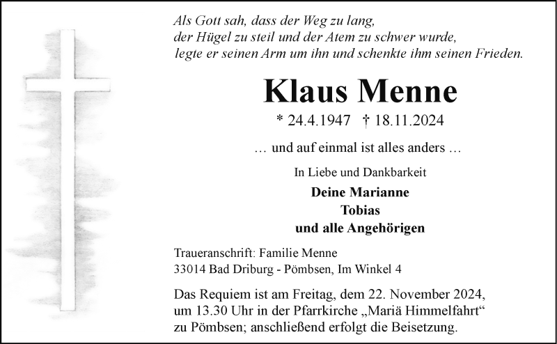 Hier finden Sie alle Traueranzeigen aus der Zeitung, die bisher für Klaus Menne erschienen sind. Weitere Traueranzeigen, die in der Zeitung erscheinen, werden hier ebenfalls aufgelistet