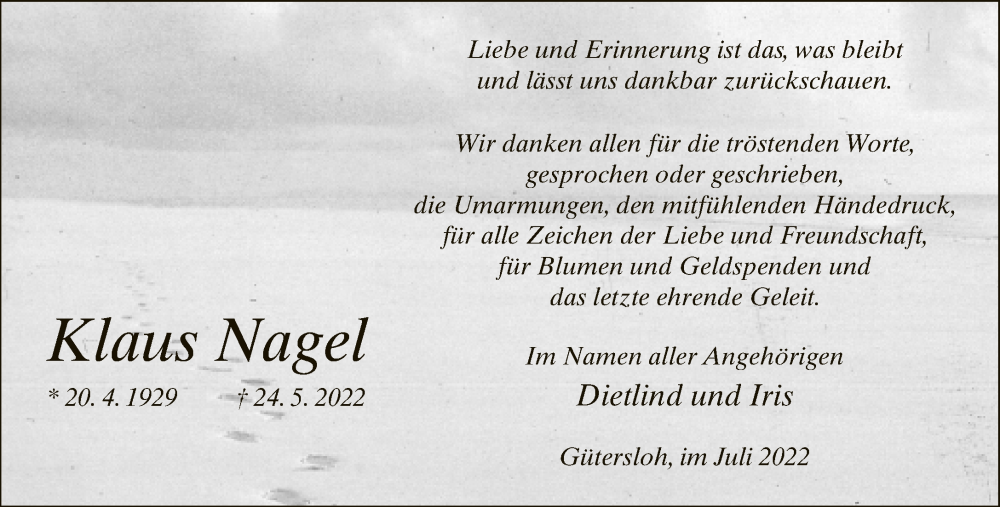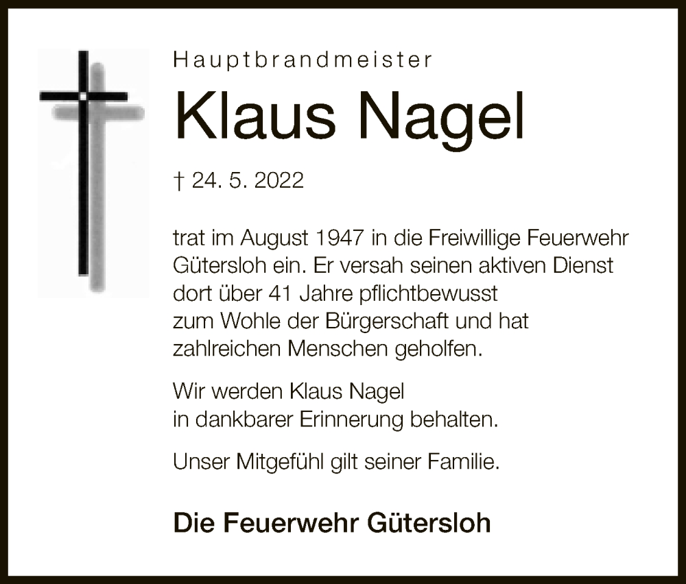 Hier finden Sie alle Traueranzeigen aus der Zeitung, die bisher für Klaus Nagel erschienen sind. Weitere Traueranzeigen, die in der Zeitung erscheinen, werden hier ebenfalls aufgelistet