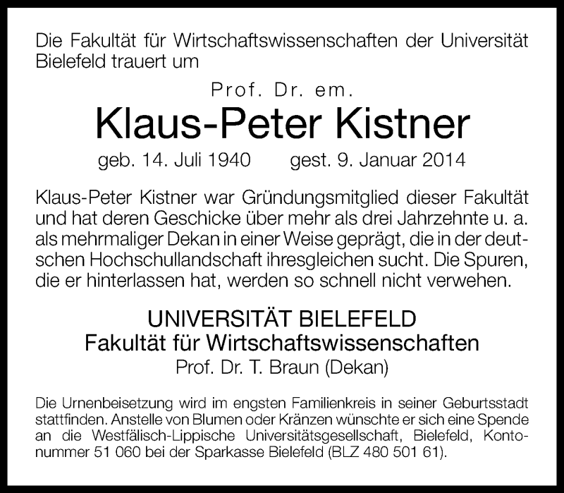 Hier finden Sie alle Traueranzeigen aus der Zeitung, die bisher für Klaus-Peter Kistner erschienen sind. Weitere Traueranzeigen, die in der Zeitung erscheinen, werden hier ebenfalls aufgelistet