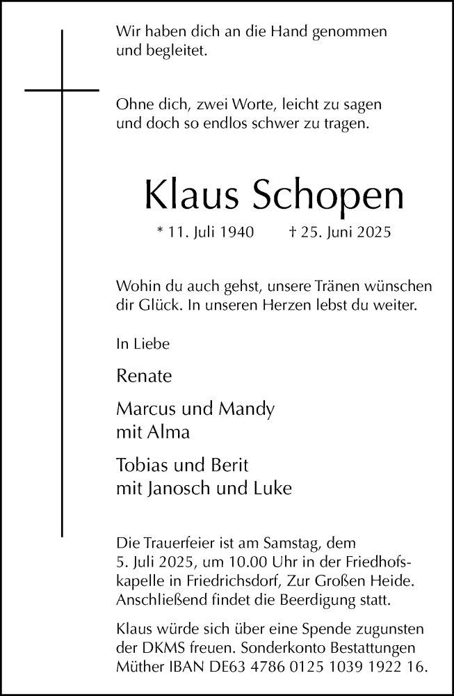 Hier finden Sie alle Traueranzeigen aus der Zeitung, die bisher für Klaus Schopen erschienen sind. Weitere Traueranzeigen, die in der Zeitung erscheinen, werden hier ebenfalls aufgelistet