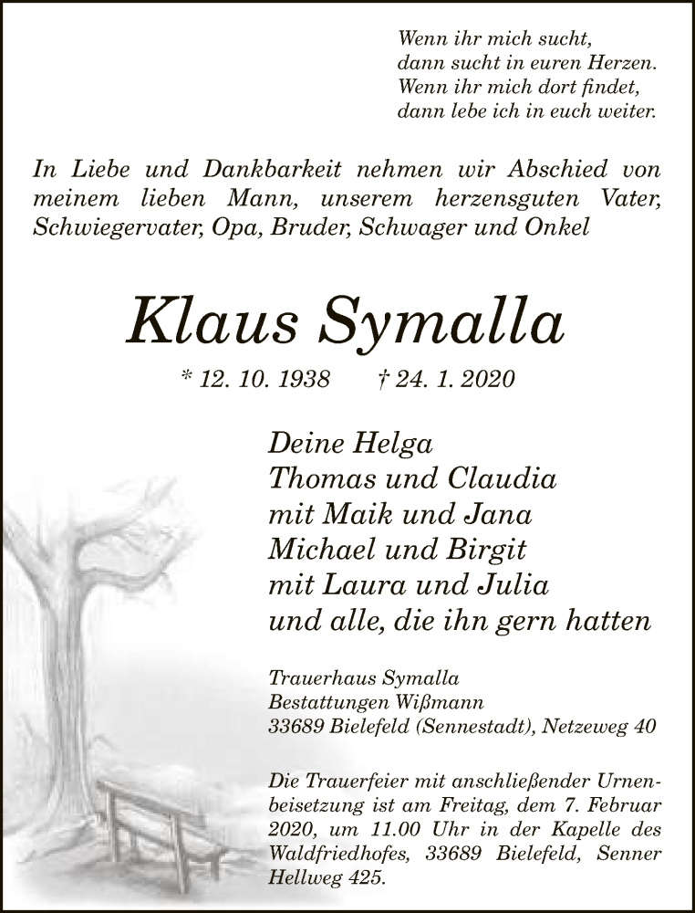Hier finden Sie alle Traueranzeigen aus der Zeitung, die bisher für Klaus Symalla erschienen sind. Weitere Traueranzeigen, die in der Zeitung erscheinen, werden hier ebenfalls aufgelistet