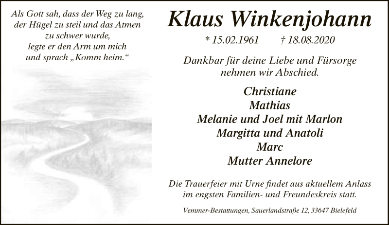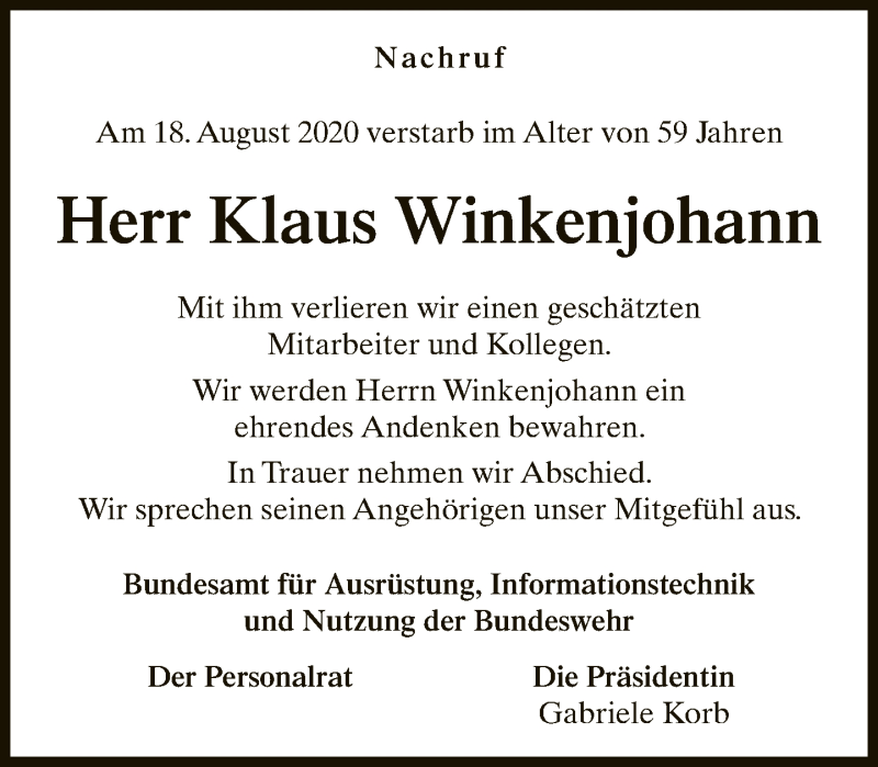 Hier finden Sie alle Traueranzeigen aus der Zeitung, die bisher für Klaus Winkenjohann erschienen sind. Weitere Traueranzeigen, die in der Zeitung erscheinen, werden hier ebenfalls aufgelistet