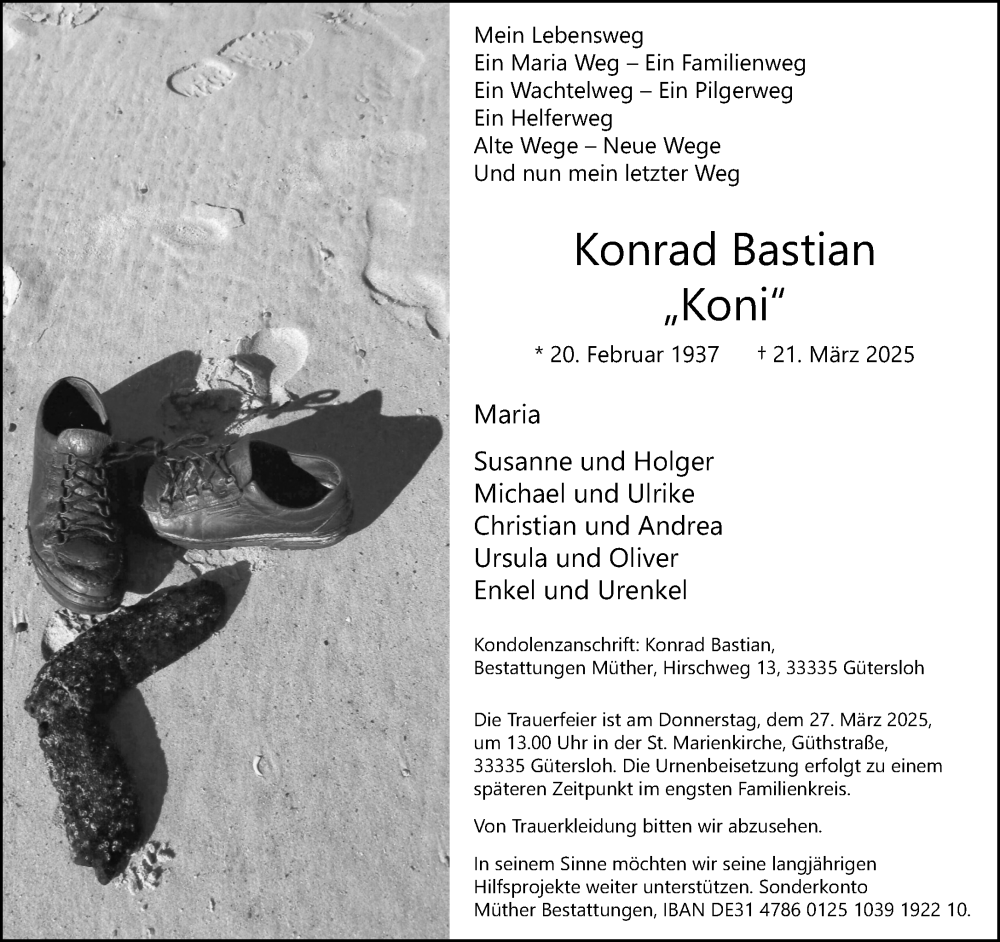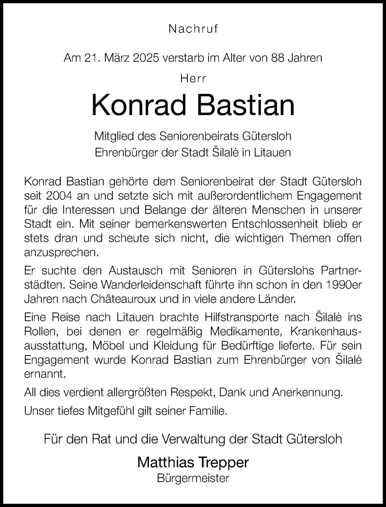 Hier finden Sie alle Traueranzeigen aus der Zeitung, die bisher für Konrad Bastian erschienen sind. Weitere Traueranzeigen, die in der Zeitung erscheinen, werden hier ebenfalls aufgelistet