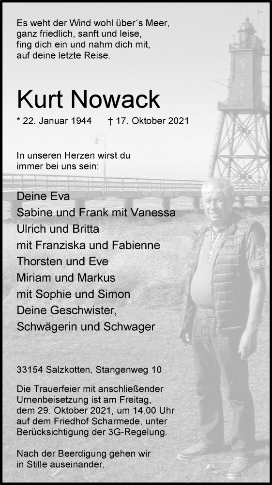 Hier finden Sie alle Traueranzeigen aus der Zeitung, die bisher für Kurt Nowack erschienen sind. Weitere Traueranzeigen, die in der Zeitung erscheinen, werden hier ebenfalls aufgelistet