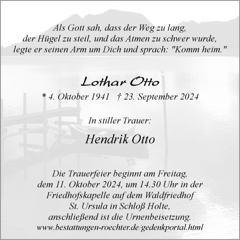 Hier finden Sie alle Traueranzeigen aus der Zeitung, die bisher für Lothar Otto Otto erschienen sind. Weitere Traueranzeigen, die in der Zeitung erscheinen, werden hier ebenfalls aufgelistet