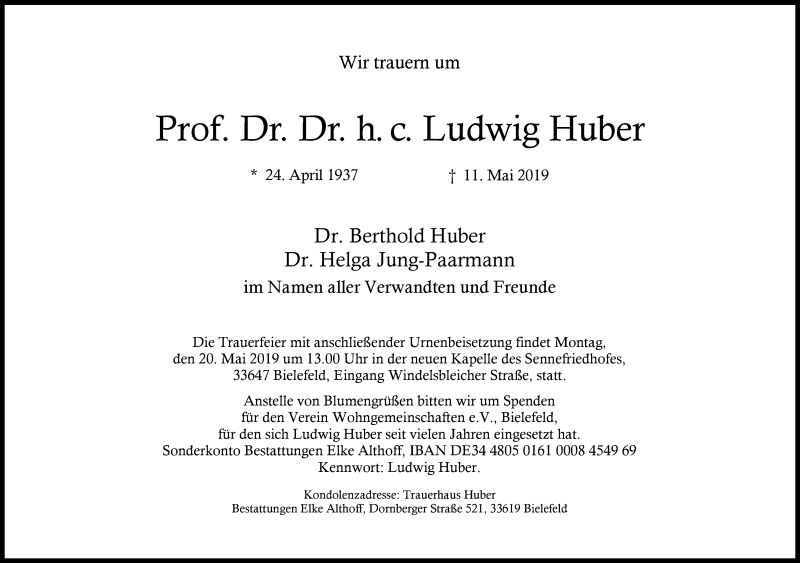 Hier finden Sie alle Traueranzeigen aus der Zeitung, die bisher für Ludwig Huber erschienen sind. Weitere Traueranzeigen, die in der Zeitung erscheinen, werden hier ebenfalls aufgelistet