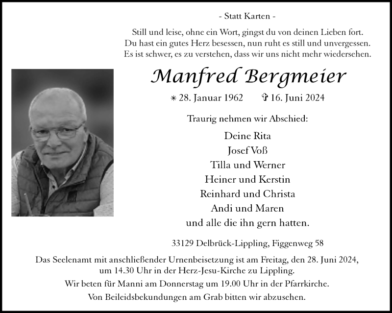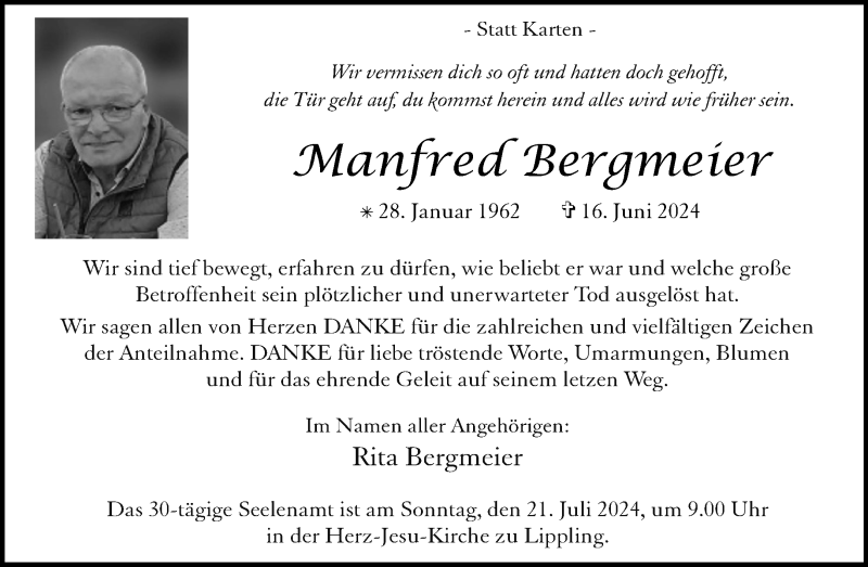 Hier finden Sie alle Traueranzeigen aus der Zeitung, die bisher für Manfred Bergmeier erschienen sind. Weitere Traueranzeigen, die in der Zeitung erscheinen, werden hier ebenfalls aufgelistet