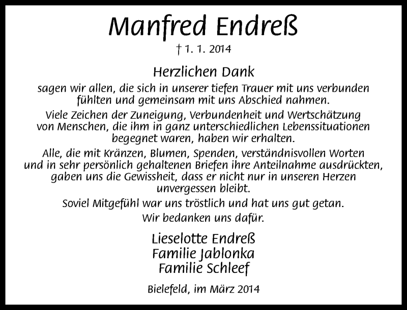 Hier finden Sie alle Traueranzeigen aus der Zeitung, die bisher für Manfred Endreß erschienen sind. Weitere Traueranzeigen, die in der Zeitung erscheinen, werden hier ebenfalls aufgelistet