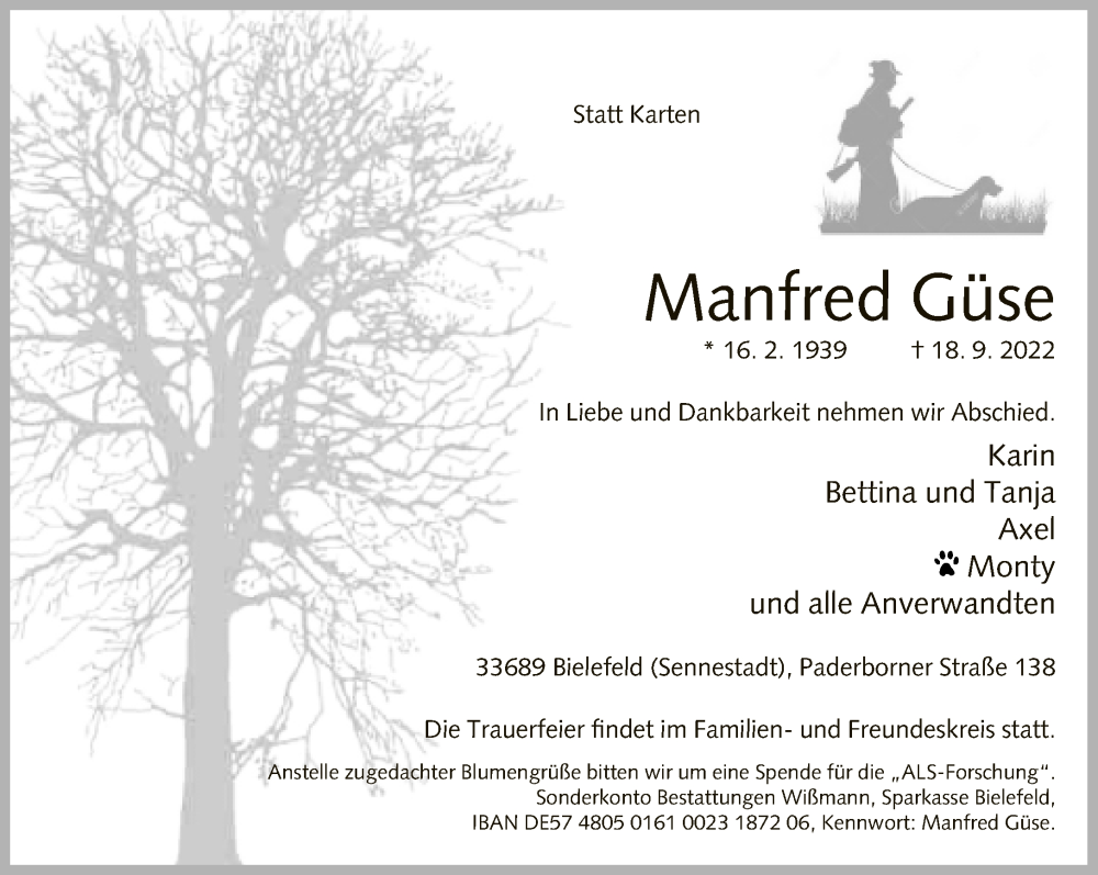 Hier finden Sie alle Traueranzeigen aus der Zeitung, die bisher für Manfred Güse erschienen sind. Weitere Traueranzeigen, die in der Zeitung erscheinen, werden hier ebenfalls aufgelistet
