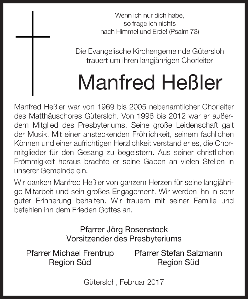 Hier finden Sie alle Traueranzeigen aus der Zeitung, die bisher für Manfred Heßler erschienen sind. Weitere Traueranzeigen, die in der Zeitung erscheinen, werden hier ebenfalls aufgelistet