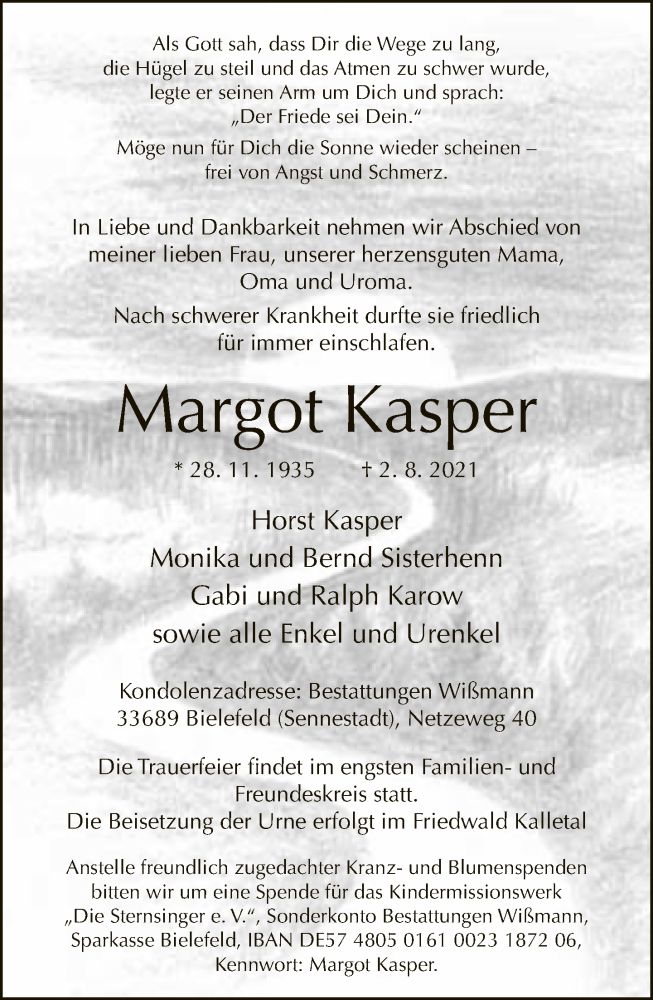 Hier finden Sie alle Traueranzeigen aus der Zeitung, die bisher für Margot Kasper erschienen sind. Weitere Traueranzeigen, die in der Zeitung erscheinen, werden hier ebenfalls aufgelistet