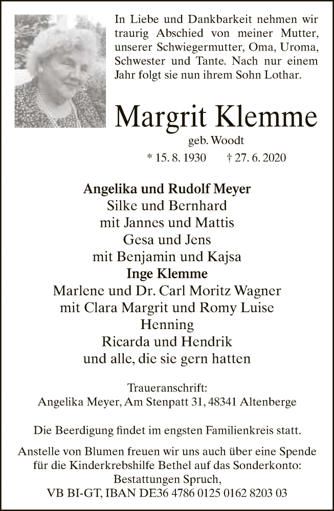 Hier finden Sie alle Traueranzeigen aus der Zeitung, die bisher für Margrit Klemme erschienen sind. Weitere Traueranzeigen, die in der Zeitung erscheinen, werden hier ebenfalls aufgelistet