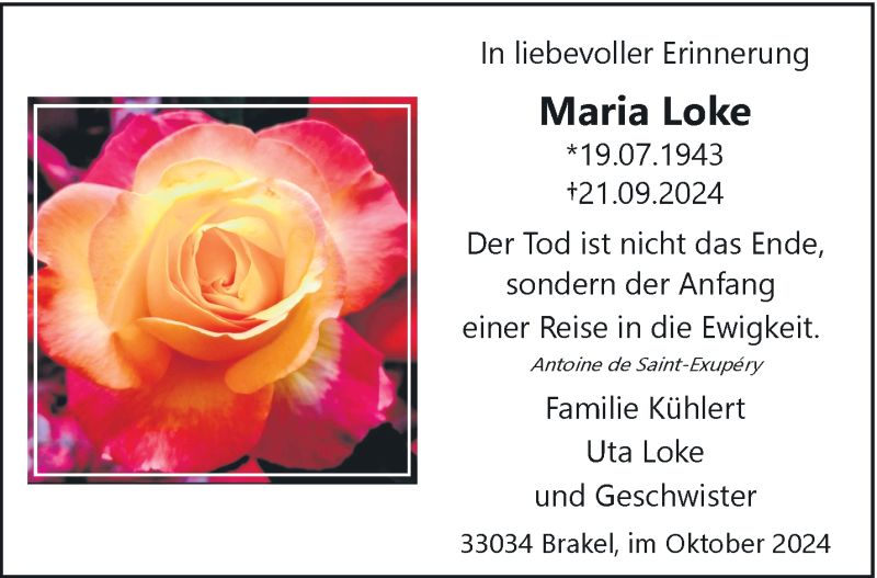 Hier finden Sie alle Traueranzeigen aus der Zeitung, die bisher für Maria Loke erschienen sind. Weitere Traueranzeigen, die in der Zeitung erscheinen, werden hier ebenfalls aufgelistet
