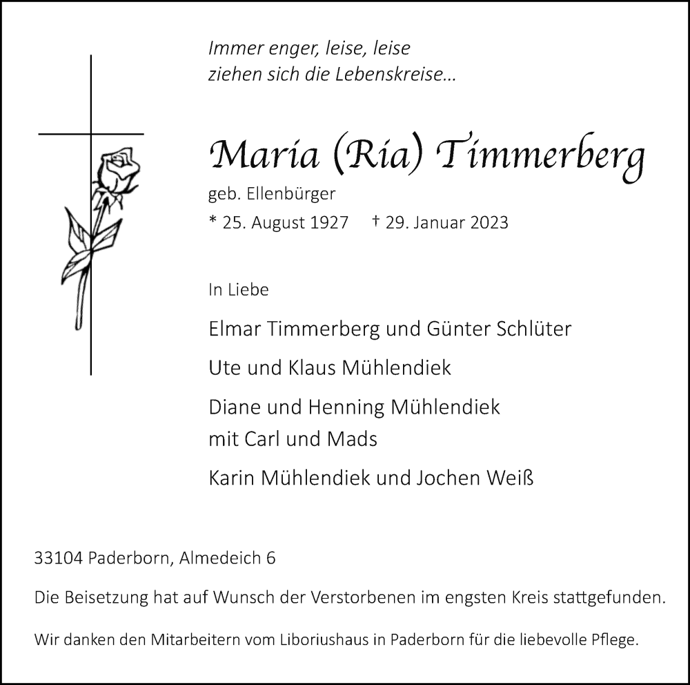 Hier finden Sie alle Traueranzeigen aus der Zeitung, die bisher für Maria Timmerberg erschienen sind. Weitere Traueranzeigen, die in der Zeitung erscheinen, werden hier ebenfalls aufgelistet