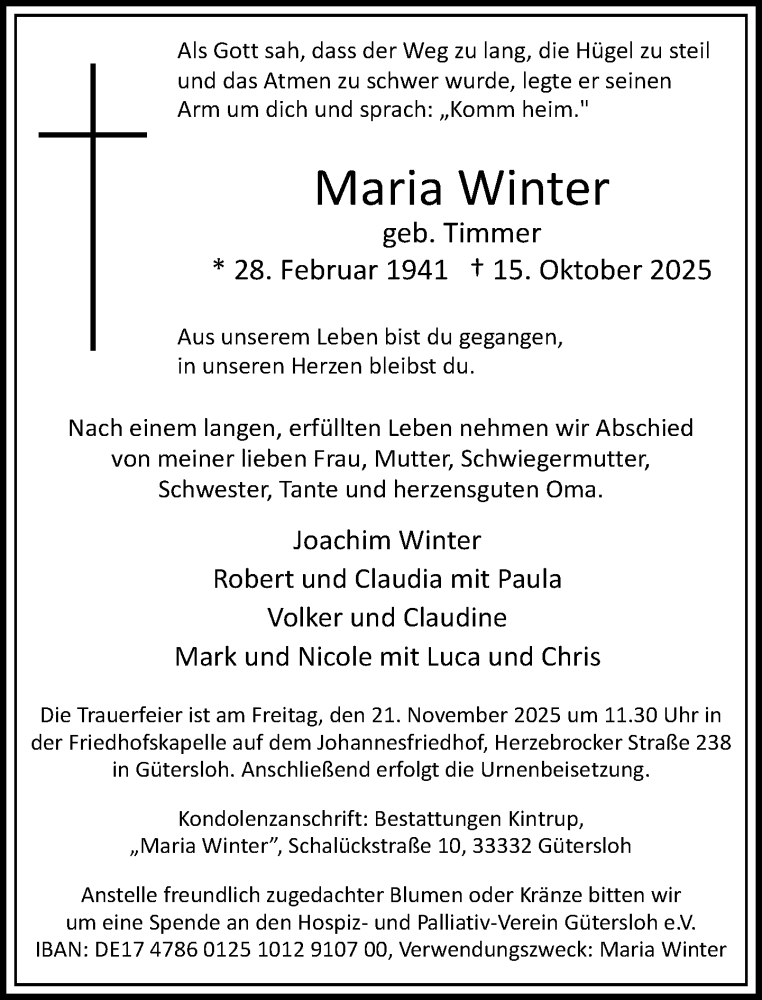 Hier finden Sie alle Traueranzeigen aus der Zeitung, die bisher für Maria Winter erschienen sind. Weitere Traueranzeigen, die in der Zeitung erscheinen, werden hier ebenfalls aufgelistet
