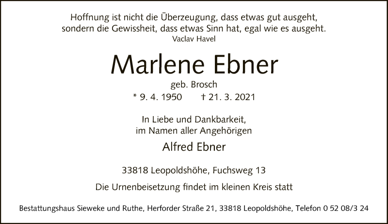Hier finden Sie alle Traueranzeigen aus der Zeitung, die bisher für Marlene Ebner erschienen sind. Weitere Traueranzeigen, die in der Zeitung erscheinen, werden hier ebenfalls aufgelistet