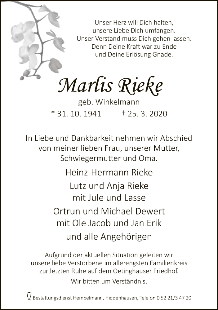 Hier finden Sie alle Traueranzeigen aus der Zeitung, die bisher für Marlis Rieke erschienen sind. Weitere Traueranzeigen, die in der Zeitung erscheinen, werden hier ebenfalls aufgelistet