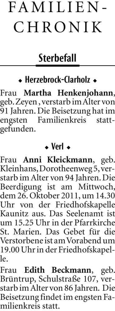 Hier finden Sie alle Traueranzeigen aus der Zeitung, die bisher für Martha Henkenjohann erschienen sind. Weitere Traueranzeigen, die in der Zeitung erscheinen, werden hier ebenfalls aufgelistet