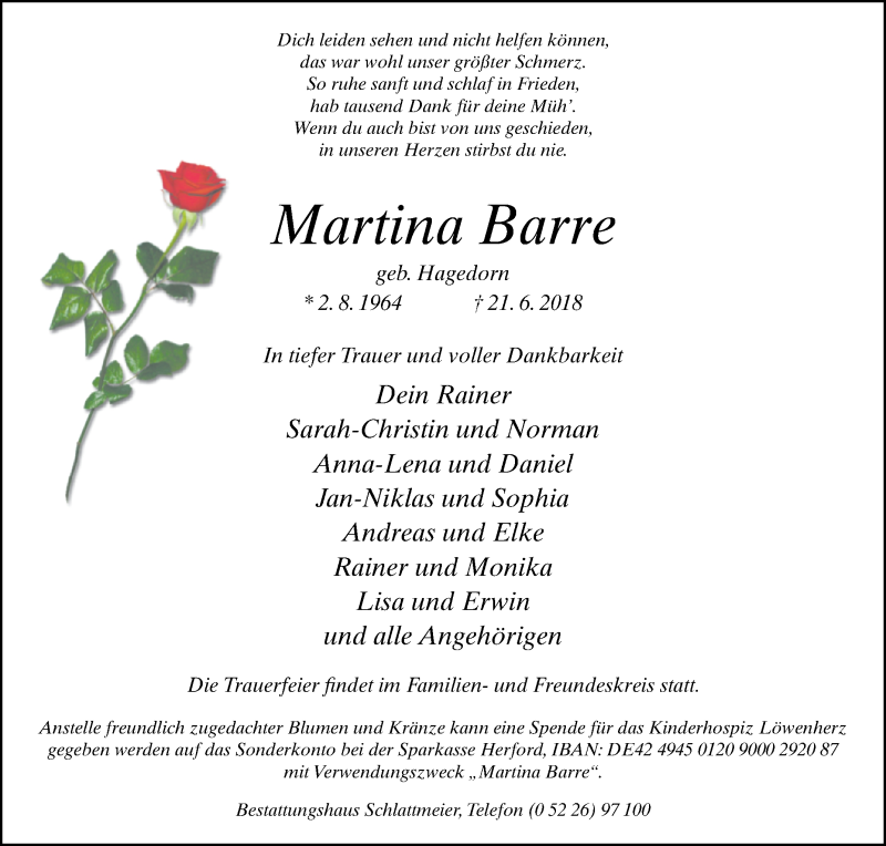 Hier finden Sie alle Traueranzeigen aus der Zeitung, die bisher für Martina Barre erschienen sind. Weitere Traueranzeigen, die in der Zeitung erscheinen, werden hier ebenfalls aufgelistet