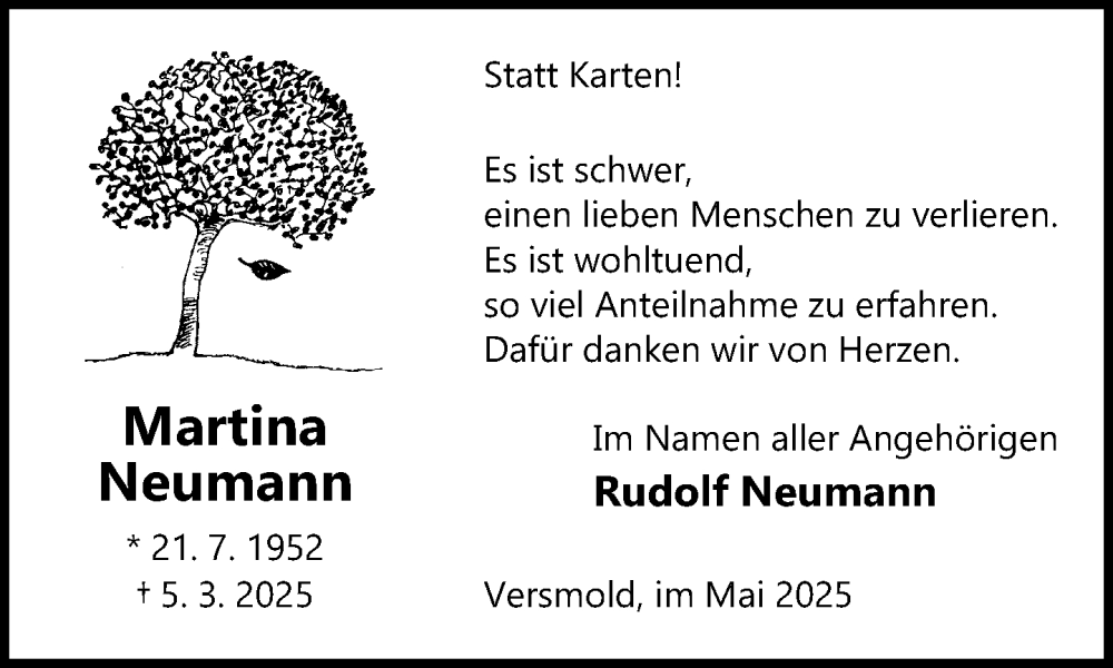 Hier finden Sie alle Traueranzeigen aus der Zeitung, die bisher für Martina Neumann erschienen sind. Weitere Traueranzeigen, die in der Zeitung erscheinen, werden hier ebenfalls aufgelistet