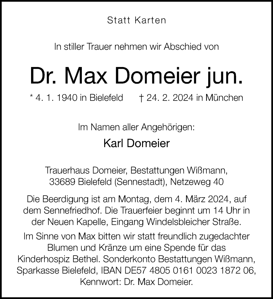 Hier finden Sie alle Traueranzeigen aus der Zeitung, die bisher für Max Domeier erschienen sind. Weitere Traueranzeigen, die in der Zeitung erscheinen, werden hier ebenfalls aufgelistet