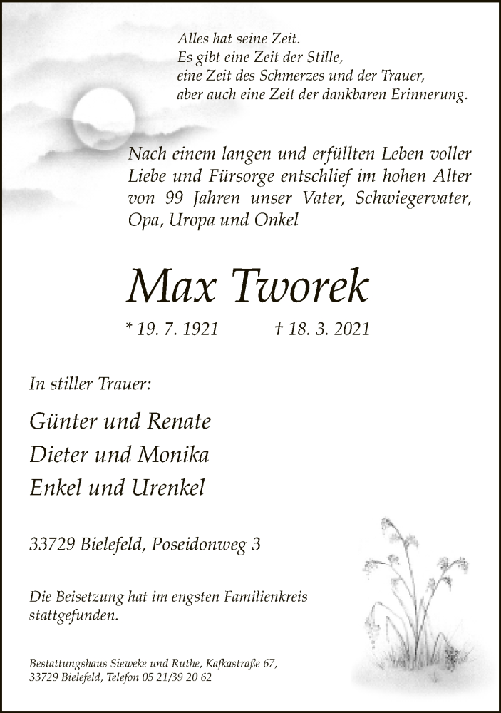 Hier finden Sie alle Traueranzeigen aus der Zeitung, die bisher für Max Tworek erschienen sind. Weitere Traueranzeigen, die in der Zeitung erscheinen, werden hier ebenfalls aufgelistet