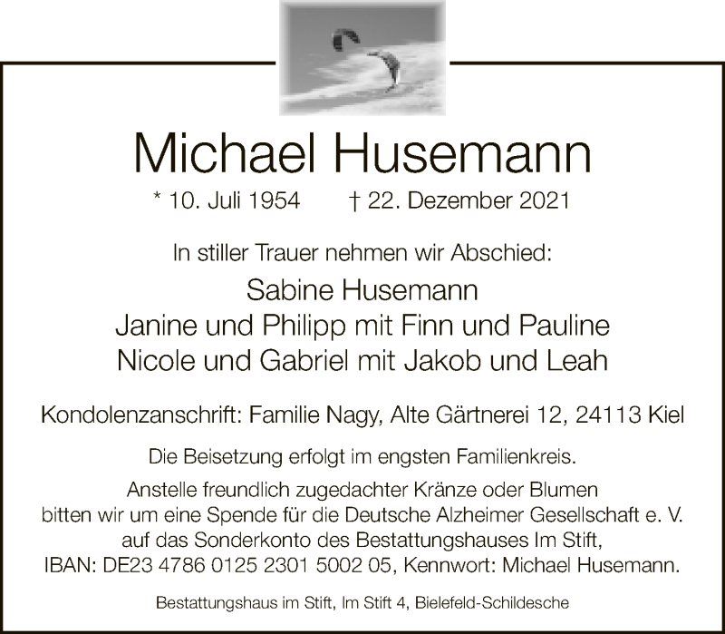 Hier finden Sie alle Traueranzeigen aus der Zeitung, die bisher für Michael Husemann erschienen sind. Weitere Traueranzeigen, die in der Zeitung erscheinen, werden hier ebenfalls aufgelistet