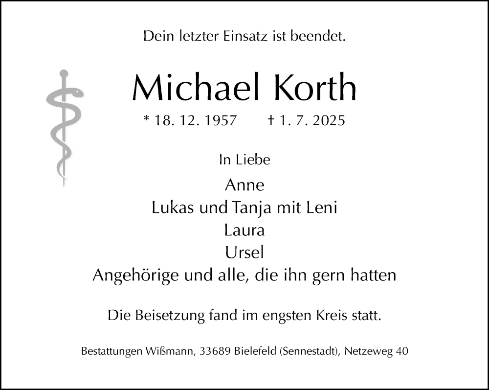 Hier finden Sie alle Traueranzeigen aus der Zeitung, die bisher für Michael Korth erschienen sind. Weitere Traueranzeigen, die in der Zeitung erscheinen, werden hier ebenfalls aufgelistet