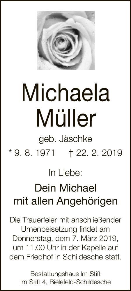 Hier finden Sie alle Traueranzeigen aus der Zeitung, die bisher für Michaela Müller erschienen sind. Weitere Traueranzeigen, die in der Zeitung erscheinen, werden hier ebenfalls aufgelistet