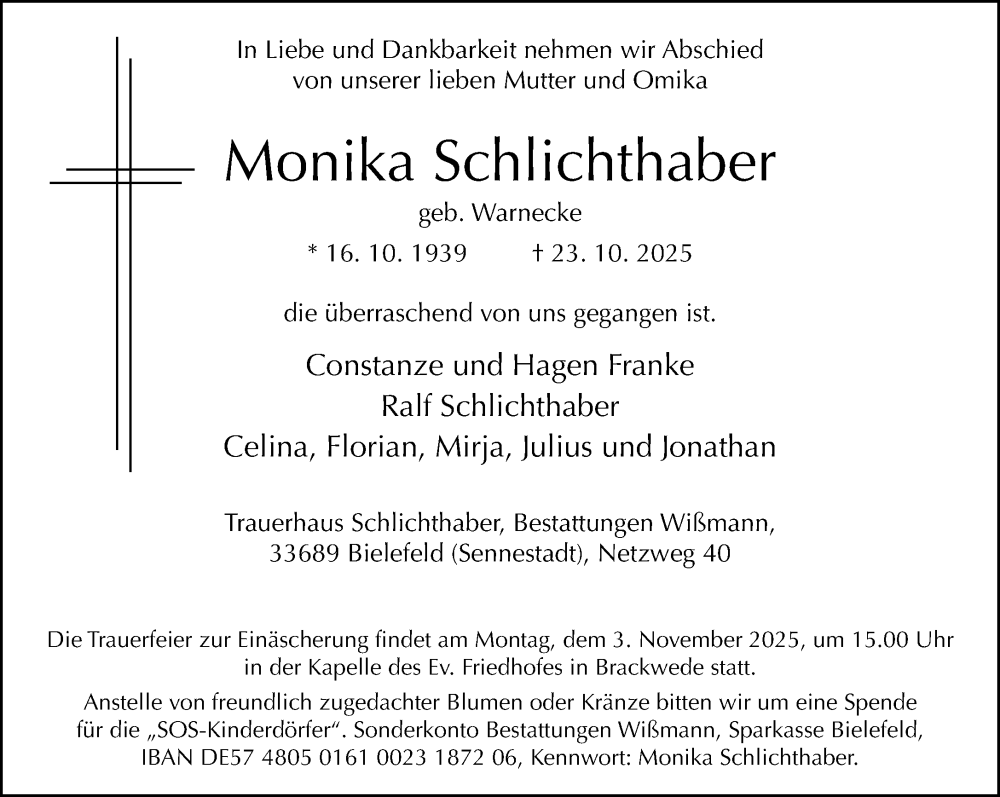 Hier finden Sie alle Traueranzeigen aus der Zeitung, die bisher für Monika Schlichthaber erschienen sind. Weitere Traueranzeigen, die in der Zeitung erscheinen, werden hier ebenfalls aufgelistet