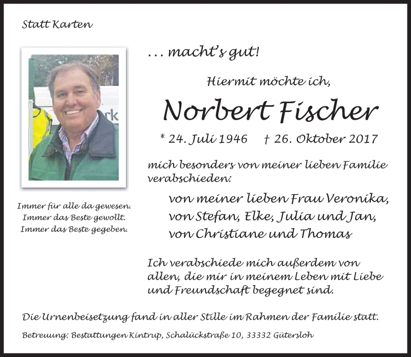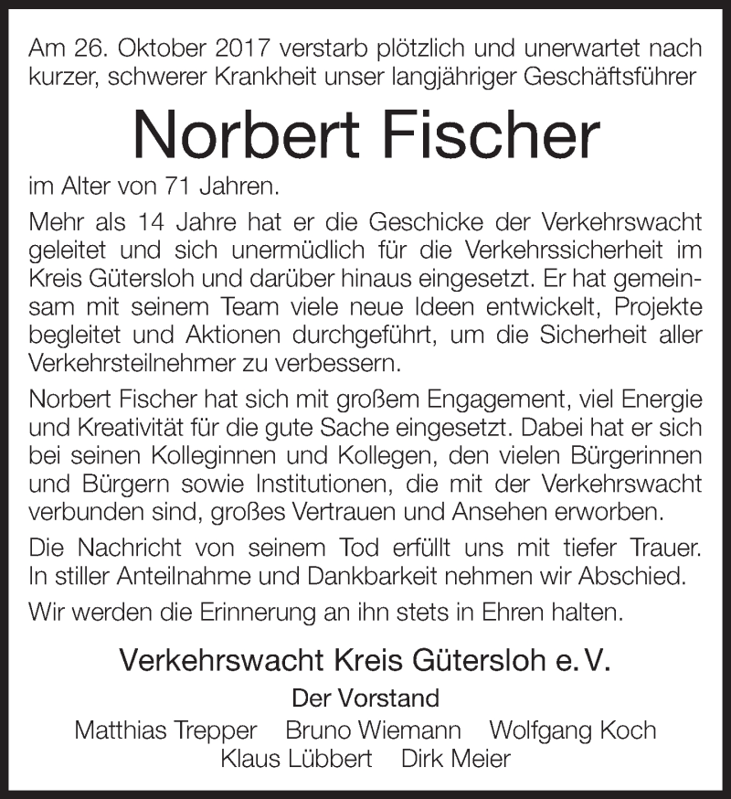 Hier finden Sie alle Traueranzeigen aus der Zeitung, die bisher für Norbert Fischer erschienen sind. Weitere Traueranzeigen, die in der Zeitung erscheinen, werden hier ebenfalls aufgelistet
