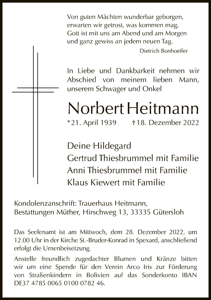 Hier finden Sie alle Traueranzeigen aus der Zeitung, die bisher für Norbert Heitmann erschienen sind. Weitere Traueranzeigen, die in der Zeitung erscheinen, werden hier ebenfalls aufgelistet