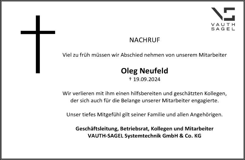 Hier finden Sie alle Traueranzeigen aus der Zeitung, die bisher für Oleg Neufeld erschienen sind. Weitere Traueranzeigen, die in der Zeitung erscheinen, werden hier ebenfalls aufgelistet