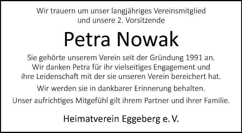 Hier finden Sie alle Traueranzeigen aus der Zeitung, die bisher für Petra Nowak erschienen sind. Weitere Traueranzeigen, die in der Zeitung erscheinen, werden hier ebenfalls aufgelistet