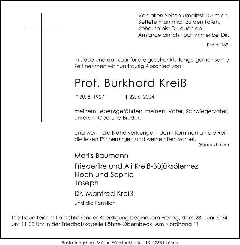 Hier finden Sie alle Traueranzeigen aus der Zeitung, die bisher für Prof. Burkhard Kreiß erschienen sind. Weitere Traueranzeigen, die in der Zeitung erscheinen, werden hier ebenfalls aufgelistet